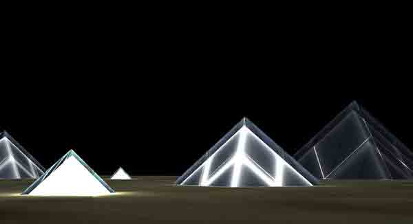 The Lunar Cubit is also designed to be a timekeeper, a monthly calendar, allowing viewers to measure time through eight lunar phases. The project features eight small pyramids, each denoting a different phase of the moon, confined around one “great” pyramid. They are all equipped with LED lights. So every night, the central pyramid’s LEDs illuminate inversely to the brightness of the moon. The surrounding pyramids light up, too, but only during certain moon phases.