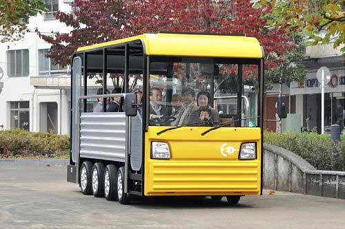 The electric bus – E-KomiBus is on 173’’ long – seems to be shorter than a 2012 Honda Civic, has 10 seats and runs on lithium-ion batteries with a range of about 25 miles after 8 hour charging. Being hundred percent electrically E-KomiBus has a top speed of 12mph, and is very suited for driving through the narrow back streets uncovered by conventional bus routes. During clear weather solar panels on the rooftop helps this electric bus to substantially increase the range.