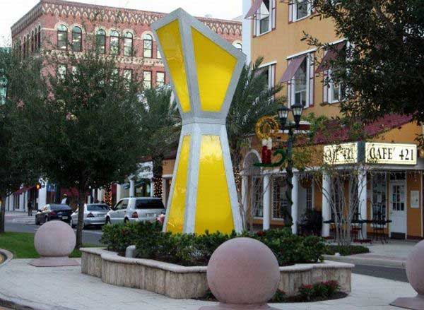 The edifice was set up as a part of Clearwater,Florida’s Sculpture360 art program. The whole sun catcher is a 15- foot tall, is made of recycled aluminum and yellow Lucite panels. To benefit a better sunlight exposure and to provide light in nearby areas the structure was situated in the middle of the street.
