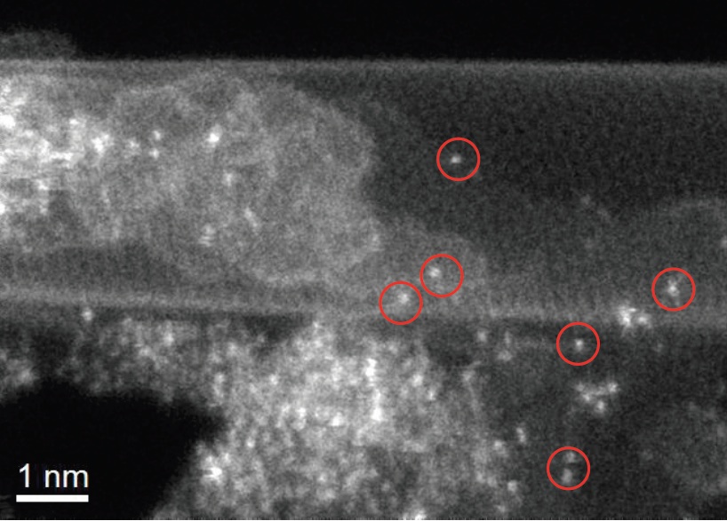 “With conventional transmission electron microscopy, it is hard to identify elements,” said team member Juan-Carlos Idrobo of ORNL. “Using a combination of imaging and spectroscopy in our scanning transmission electron microscope, the identification of the elements is straight-forward because the intensity of the nanoscale images tells you which element it is. The brighter the intensity, the heavier the element. Spectroscopy can then identify the specific element. “