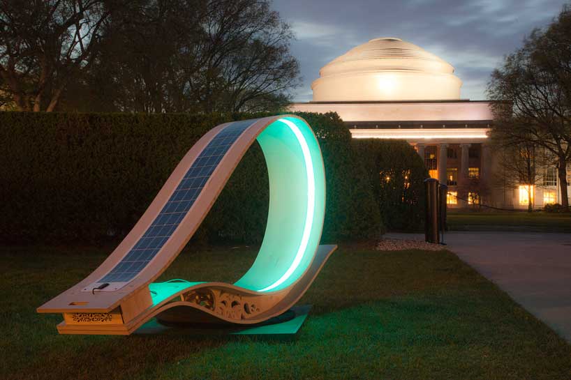 These days the Massachusetts Institute of Technology – MIT – campus was equipped with some functional art installations (outdoor chairs running on solar energy) called Soft Rocker, made by the students at the school of architecture led by Professor Sheila Kennedy as an antidote to “conventional hard urban infrastructure.”