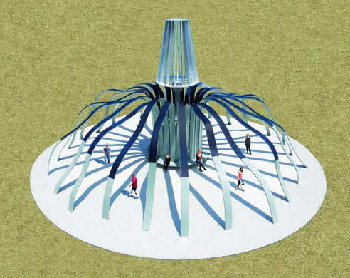 He imagine a large public gathering place inspired by the shape of a flowering plant. In its vision this Solar Wind Power Plant should be located in a hot and dry climate to use efficient solar power and wind power but you can call it a modern oasis.