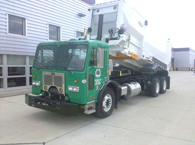 This week, the city of Ann Arbor, MI began deploying four of the first 25 trucks equipped with an Eaton Corporation hydraulic launch assist system. Ann Arbor’s mayor John Hieftje and Clean Energy Coalition executive director Sean Reed presented one of the new recycling trucks at the city’s Wheeler service center.
